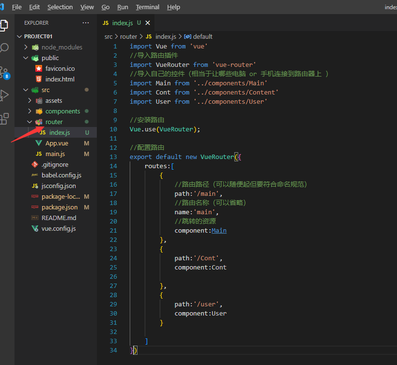 ① 在src目录下面,新建 router文件夹