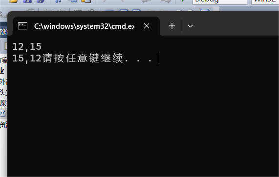 #include <stdio.h> int main() { int a,b,temp; scanf("%d,%d",&a,&b); temp=a; a=b; b=temp; printf("%d,%D",a,b); }
