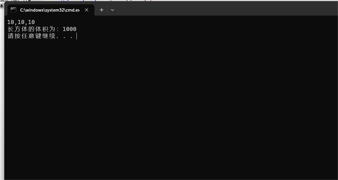 2.编写程序,输入一个长方体的长,宽,高(整数且大于0),输出这个长方体的体积。
