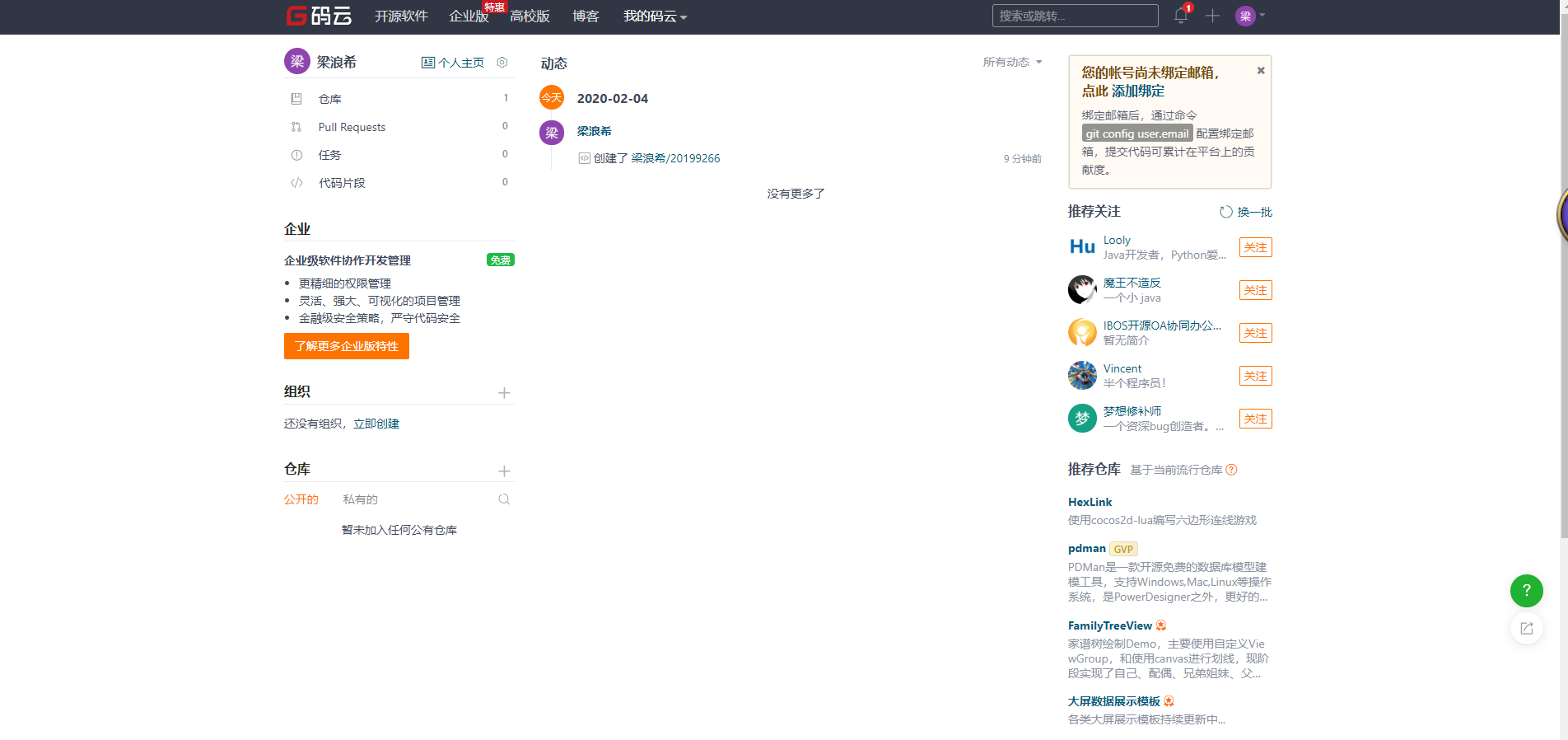 1.1 码云界面