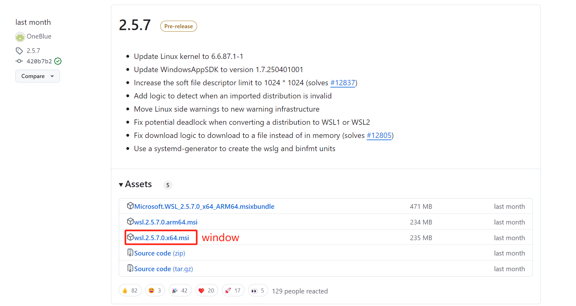 地址:https://github.com/microsoft/WSL/releases?page=1
