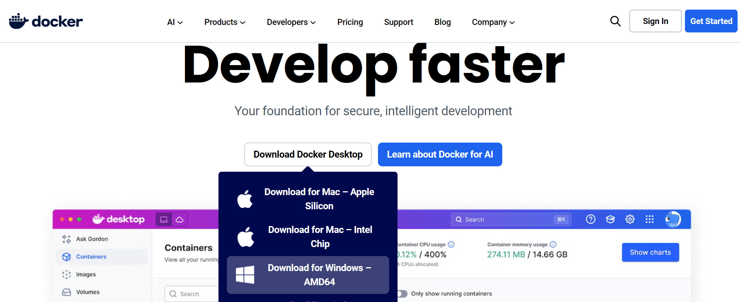 2.安装Dify首先需要安装Docker环境,Windows去下载Docker Desktop直接安装即可
