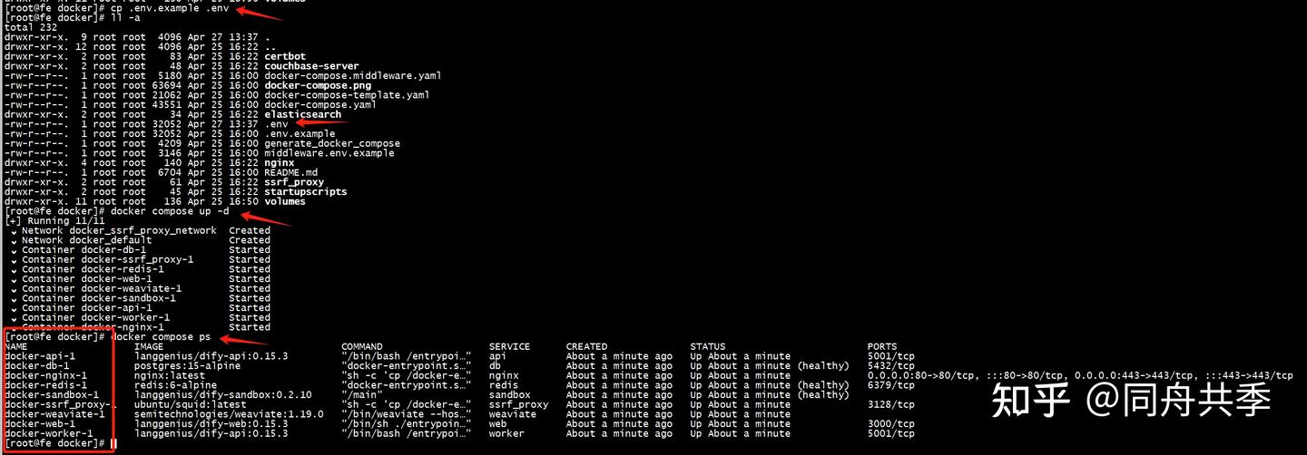 在CentOS 7下,使用Docker Compose 部署Dify ,需要提前安装好Docker、Docker Compose、Git等工具。