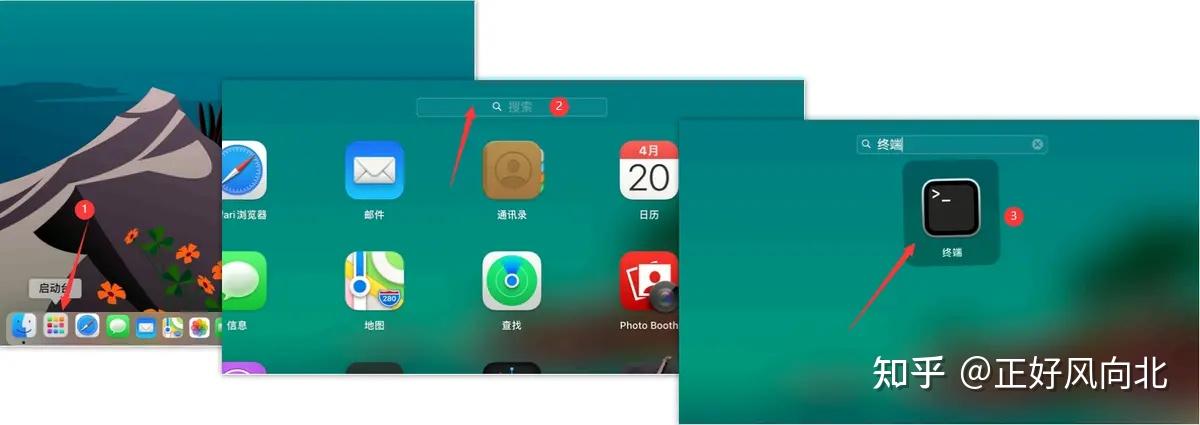 1. 在程序坞找到「终端」应用程序并打开