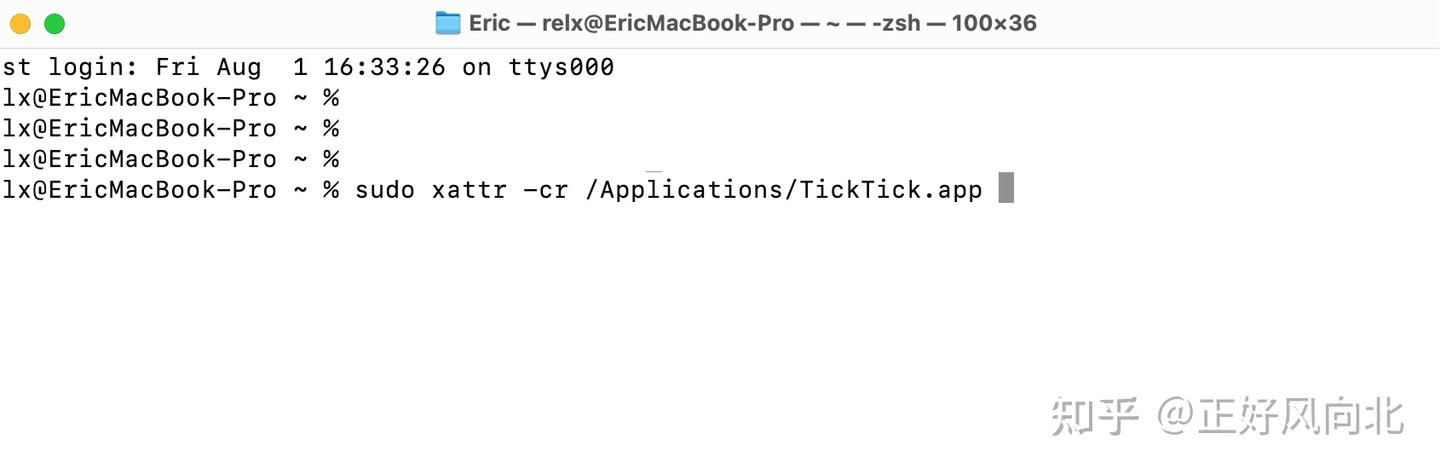 完整命令:sudo xattr -cr /Applications/TickTick.app