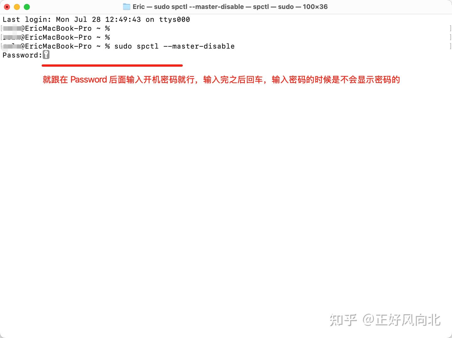 - 输入命令后回车,会 提示输入密码,在出现 password 字样后,输入你的开机密码,输密码的时候是不显示密码的,你正常输入完密码后回车就行