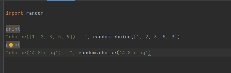 choice()是不能直接访问的,需要导入 random 模块,然后通过 random 静态对象调用该方法。