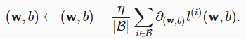 算法的步骤如下:(1)初始化模型参数的值,如随机初始化;(2)从数据集中随机抽取小批量样本且在负梯度的方向上更新参数,并不断迭代这一步骤。对于平方损失和仿射变换,我们可以明确地写成如下形式: