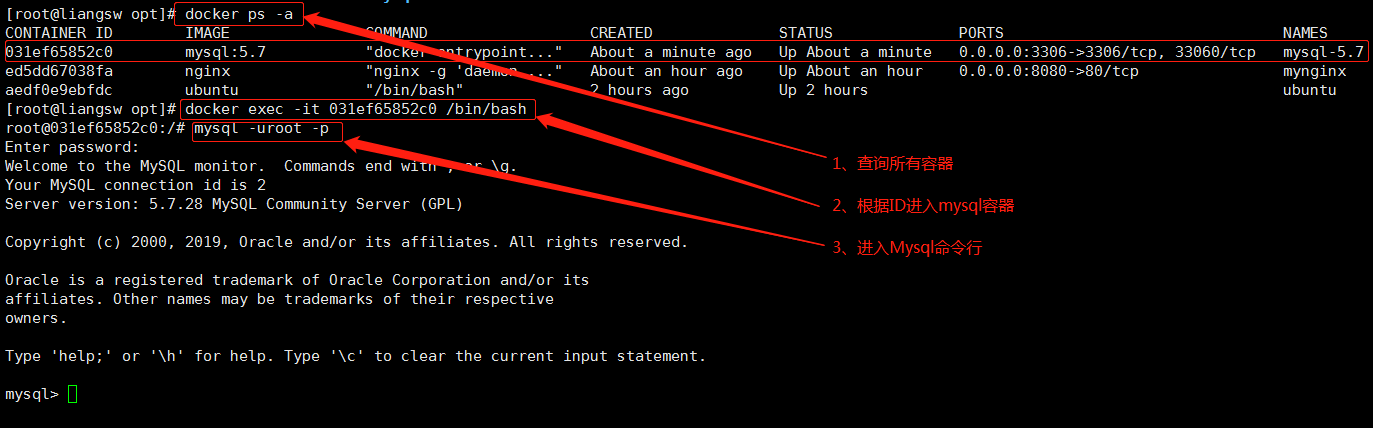 docker pull mysql:5.7 # mysql5.7的最新版;