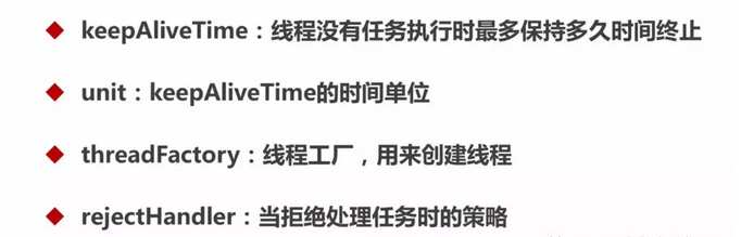 corePoolSize:核心线程池、maximumPoolSize:最大线程数、workQueue:阻塞队列,存储等待执行的任务