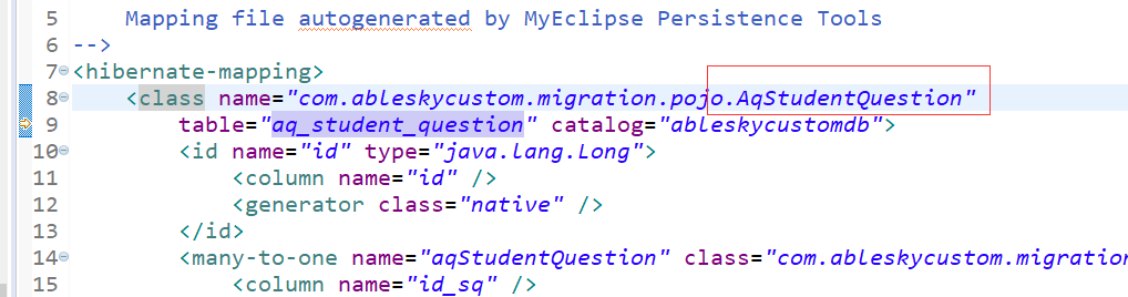 Could not parse mapping document org.hibernate.DuplicateMappingException: Duplicate class/entity mapping com.ableskycustom.migration.pojo.AqStudentQuestion