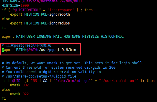 [root@psql_master ~]# vim /etc/profile export PATH=$PATH:/usr/pgsql-9.6/bin [root@psql_master ~]# source /etc/profile![]()