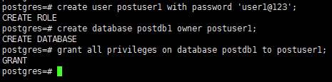 postgres=# create database postdb1 owner postuser1; 同时制定数据库所有者