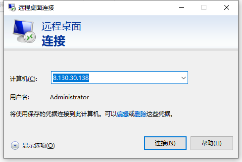 在本地电脑上 ctrl+r 输入 mstsc,输入服务器公网IP地址,之后输入服务器用户名与密码,最后建立连接。