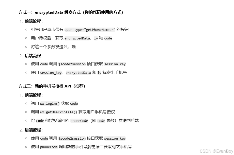 * 与encryptedData一起由前端wx.getPhoneNumber()返回