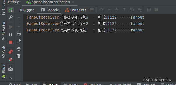 rabbitTemplate.convertAndSend(FanoutExchangeConfig.FANOUT_EXCHANGE, "", msg+"------fanout");