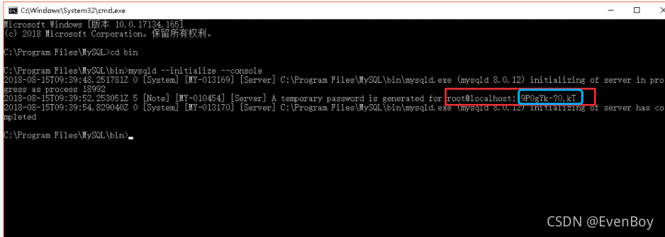 - 打开cmd进入mysql输入刚才生成的获取到初始密码进入mysql 密码(见第5步骤)