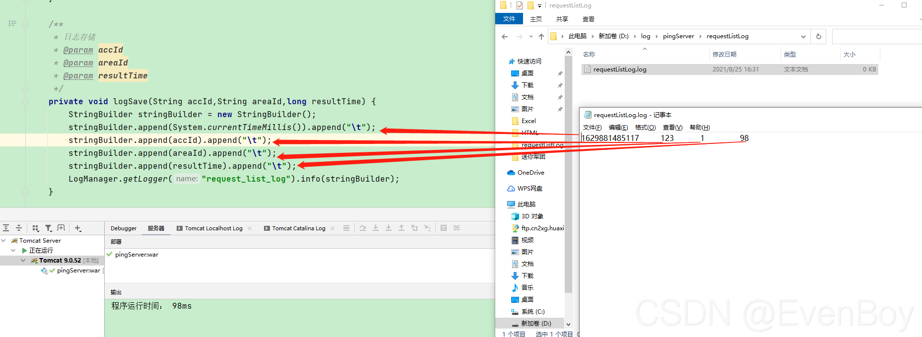 3、自定义日志路径和日志文件名称 打印日志的路径(D:\log\pingServer\requestListLog)