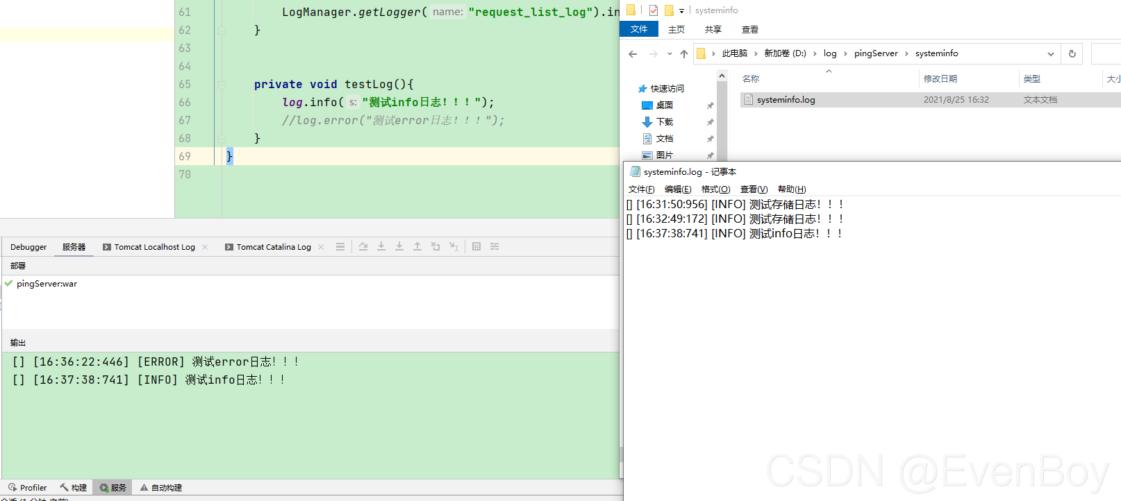 1、info级别 打印日志的路径(D:\log\pingServer\systeminfo)