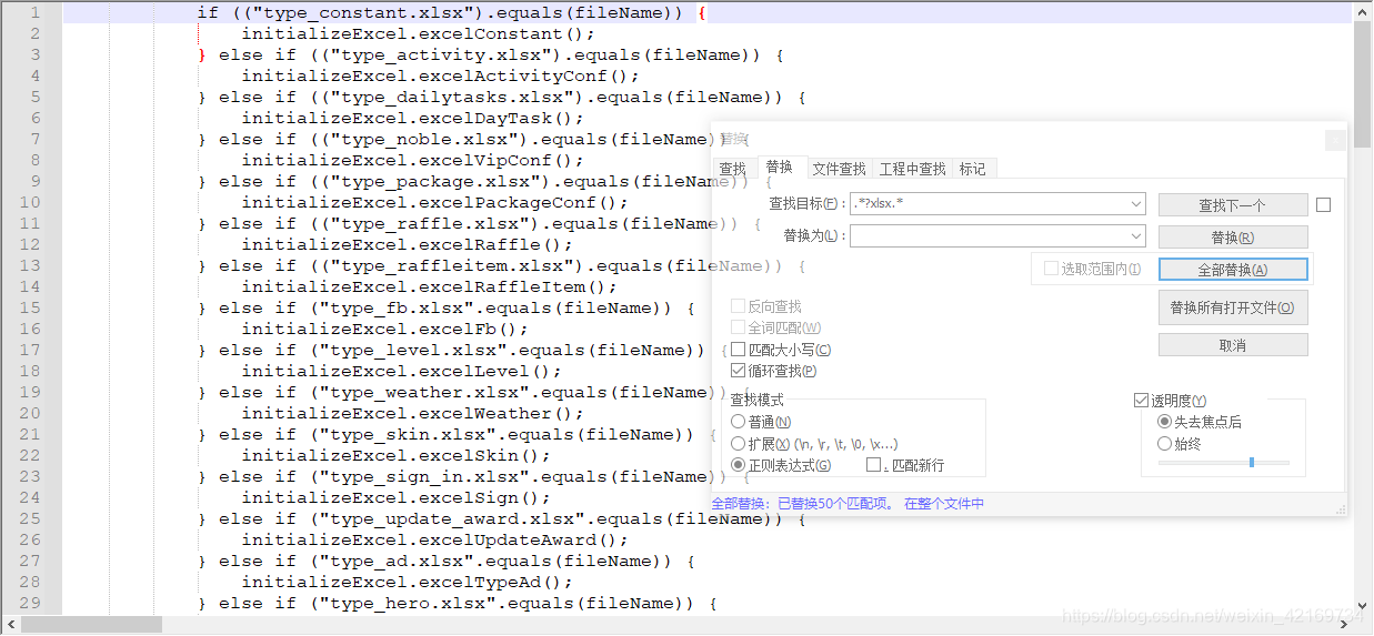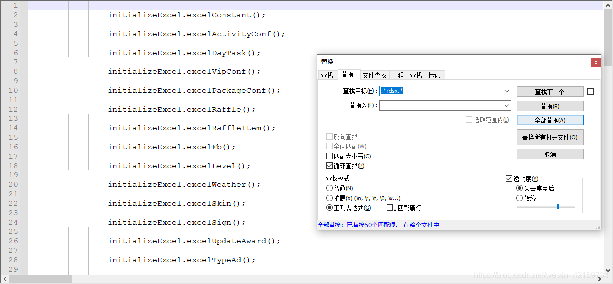 我们发现initializeExcel还存在 一样的方法把initializeExcel也使用正则表达式进行全部替换