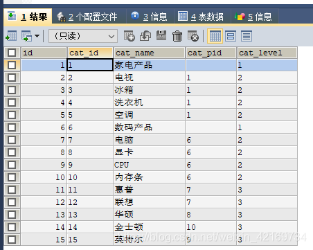 cat_id和cat_pid是父子关系