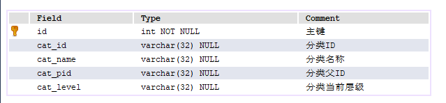 `cat_level` varchar(32) DEFAULT NULL COMMENT '分类当前层级',