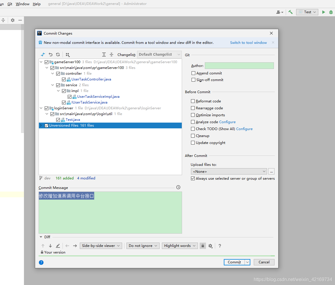idea git commit 最左边侧边栏标签转换为模态框(代码提交)