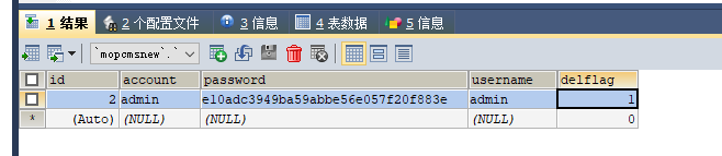1、我们的目的是需要把delflag修改为0 简单的准备一下sql