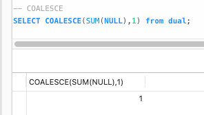 SELECT COALESCE(SUM(NULL),1) from dual;