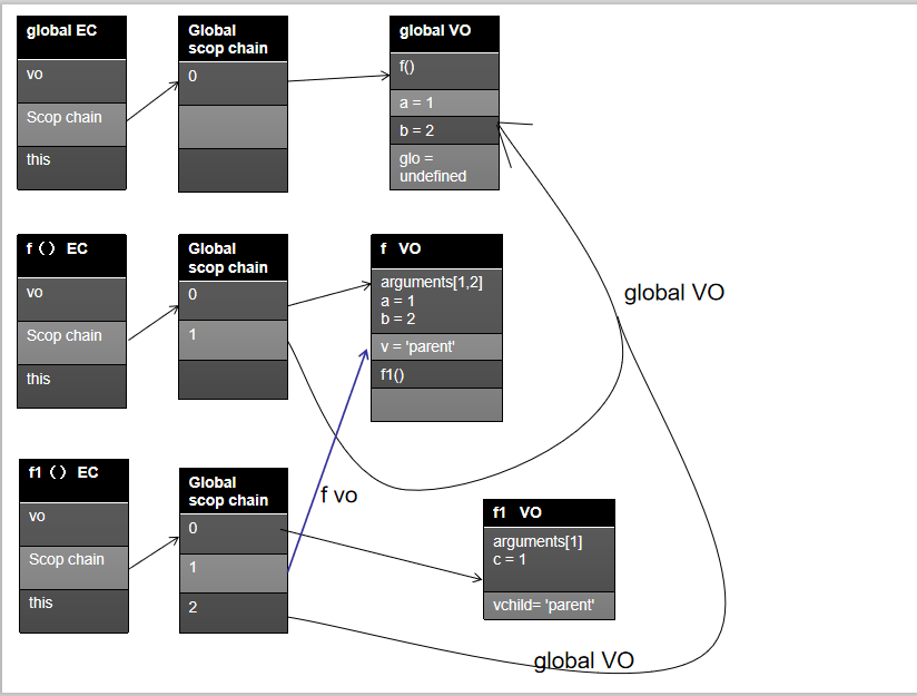 这样我们就很清晰的看这段代码的作用域的内部结构