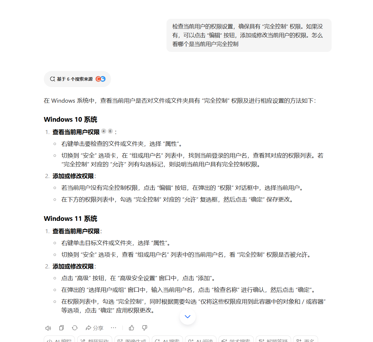 在 Windows 系统中,查看当前用户是否对文件或文件夹具有 “完全控制” 权限及进行相应设置的方法如下: