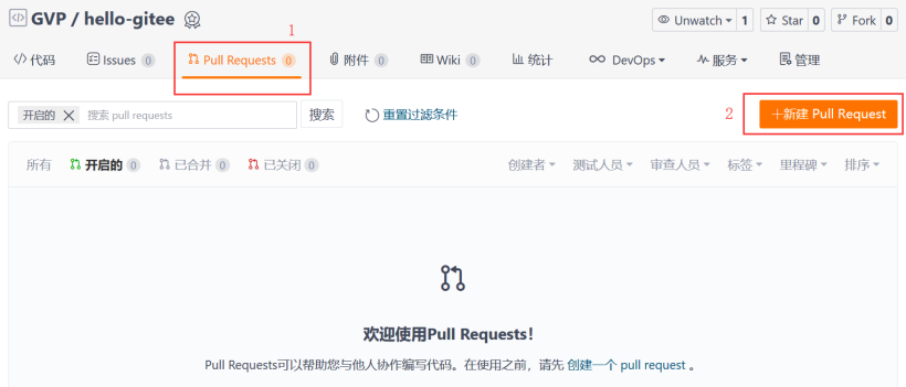 Pull Requests 是 Gitee 上分支操作的一项很重要的功能。我们可以通过审核并通过 Pull Requests 从而进行不同分支的合并。