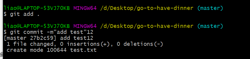 git commit -m "对该操作的相关描述"12