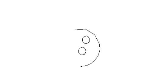 turtle.circle(50,100) turtle.circle(50,100,steps=3) turtle.up() turtle.goto(0,50) turtle.down() turtle.circle(10) turtle.up() turtle.goto(10,80) turtle.down() turtle.circle(10) turtle.hideturtle() turtle.down()