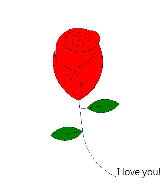 import turtle turtle.penup() turtle.left(90) turtle.fd(200) turtle.pendown() turtle.right(90) turtle.fillcolor("red") turtle.begin_fill() turtle.circle(10, 180) turtle.circle(25, 110) turtle.left(50) turtle.circle(60, 45) turtle.circle(20, 170) turtle.right(24) turtle.fd(30) turtle.left(10) turtle.circle(30, 110) turtle.fd(20) turtle.left(40) turtle.circle(90, 70) turtle.circle(30, 150) turtle.right(30) turtle.fd(15) turtle.circle(80, 90) turtle.left(15) turtle.fd(45) turtle.right(165) turtle.fd(20) turtle.left(155) turtle.circle(150, 80) turtle.left(50) turtle.circle(150, 90) turtle.end_fill() turtle.left(150) turtle.circle(-90, 70) turtle.left(20) turtle.circle(75, 105) turtle.setheading(60) turtle.circle(80, 98) turtle.circle(-90, 40) turtle.left(180) turtle.circle(90, 40) turtle.circle(-80, 98) turtle.setheading(-83) turtle.fd(30) turtle.left(90) turtle.fd(25) turtle.left(45) turtle.fillcolor("green") turtle.begin_fill() turtle.circle(-80, 90) turtle.right(90) turtle.circle(-80, 90) turtle.end_fill() turtle.right(135) turtle.fd(60) turtle.left(180) turtle.fd(85) turtle.left(90) turtle.fd(80) turtle.right(90) turtle.right(45) turtle.fillcolor("green") turtle.begin_fill() turtle.circle(80, 90) turtle.left(90) turtle.circle(80, 90) turtle.end_fill() turtle.left(135) turtle.fd(60) turtle.left(180) turtle.fd(60) turtle.right(90) turtle.circle(200, 60) turtle.write('I love you!', font=("Microsoft JhengHei", 24)) turtle.hideturtle() turtle.done()