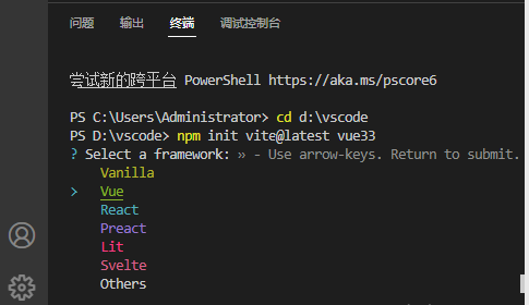 npm create vite@latest vue3 ------>vue3这个是自定义名字