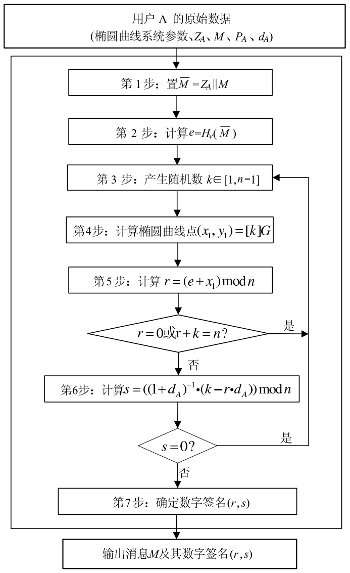 SM2数字签名算法由一个签名者对数据产生数字签名,并由一个验证者验证签名的可靠性。每个签名者有一个公钥和一个私钥,其中私钥用于产生签名,验证者用签名者的公钥验证签名。在签名的生成过程之前,要用密码杂凑函数对M (包含ZA和待签消息M)进行压缩;在验证过程之前,要用密码杂凑函数对M′(包含ZA和验证消息M′)进行压缩。