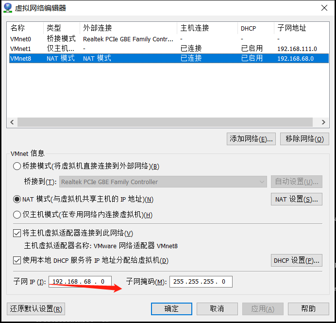 虚拟机使用nat模式,dhcp方式获取ip地址