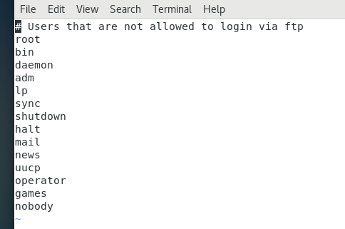 ftpuserss文件类似黑名单,文件中的用户无法登陆ftp