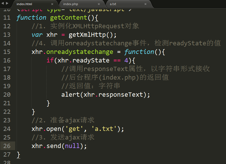 目标: 在index.html页面中设置一个按钮,点击按钮时获取后台index.php文件返回的数据