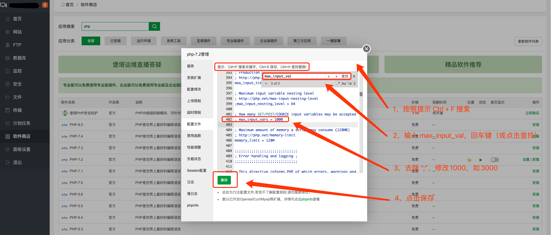 5,Ctrl + F 或 command + F(iOS)搜索,输入 max_input_val,回车键或点击查找,找到内容中“; max_input_val = 1000”,去除 “;”,修改1000为你想要的值,如 3000,点击保存(如图)