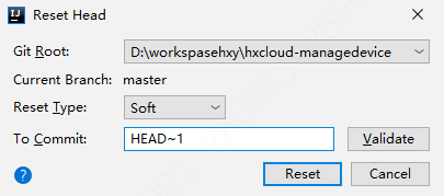 第二步:Rest_Type选择Soft,To_Conmit:默认为HEAD需要在末尾加上~1然后点击Reset即可,在查看本地就没有代码了