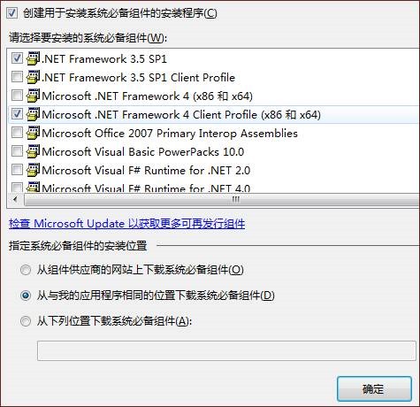 选择:“从与我应用程序相同的位置下载系统必备组件”