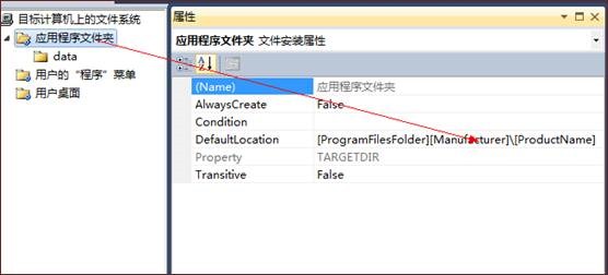 在应用程序上点击左键,如下图:第一个为系统主目录(默认C:\Programe),第二个为公司名([Manufacturer]),第三个为应用程序名称,这样在安装时就会创建两层的文件路径。需要删除DefaultLocation中的:[Manufacturer] 。删除后只有应用程序的名称。