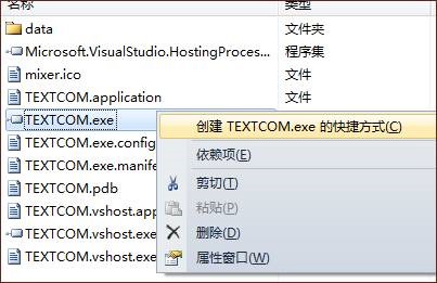 然后同样的方式创建TEXTCOM.exe一个快捷方式(“串口测试程序”),拖动到“串口程序”中;
