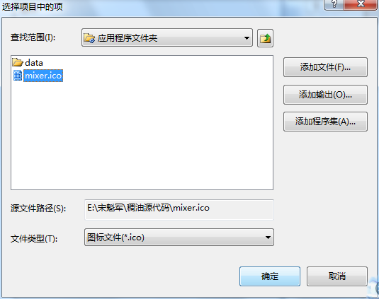 把需要创建程序快捷方式的图标也添加进来:后缀名为:ico