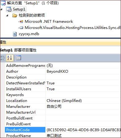 点击项目名称(Setup1),在属性中找到:ProductCode