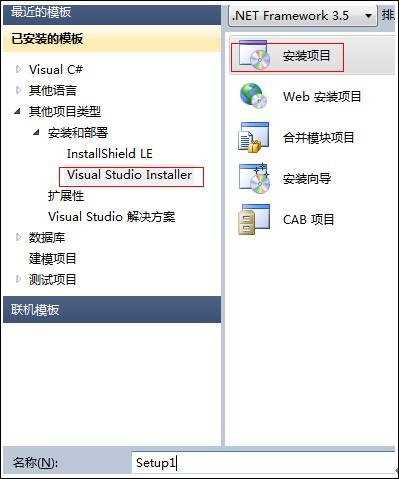 1、在vs2010 选择“新建项目”→“ 其他项目类型”→“ Visual Studio Installer→“安装项目”: