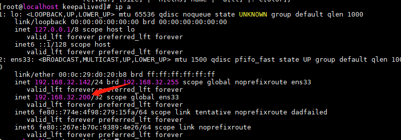 启动后此时 142 为主节点,可以在 142上使用 ip a 命令查看到虚拟 IP 的情况: