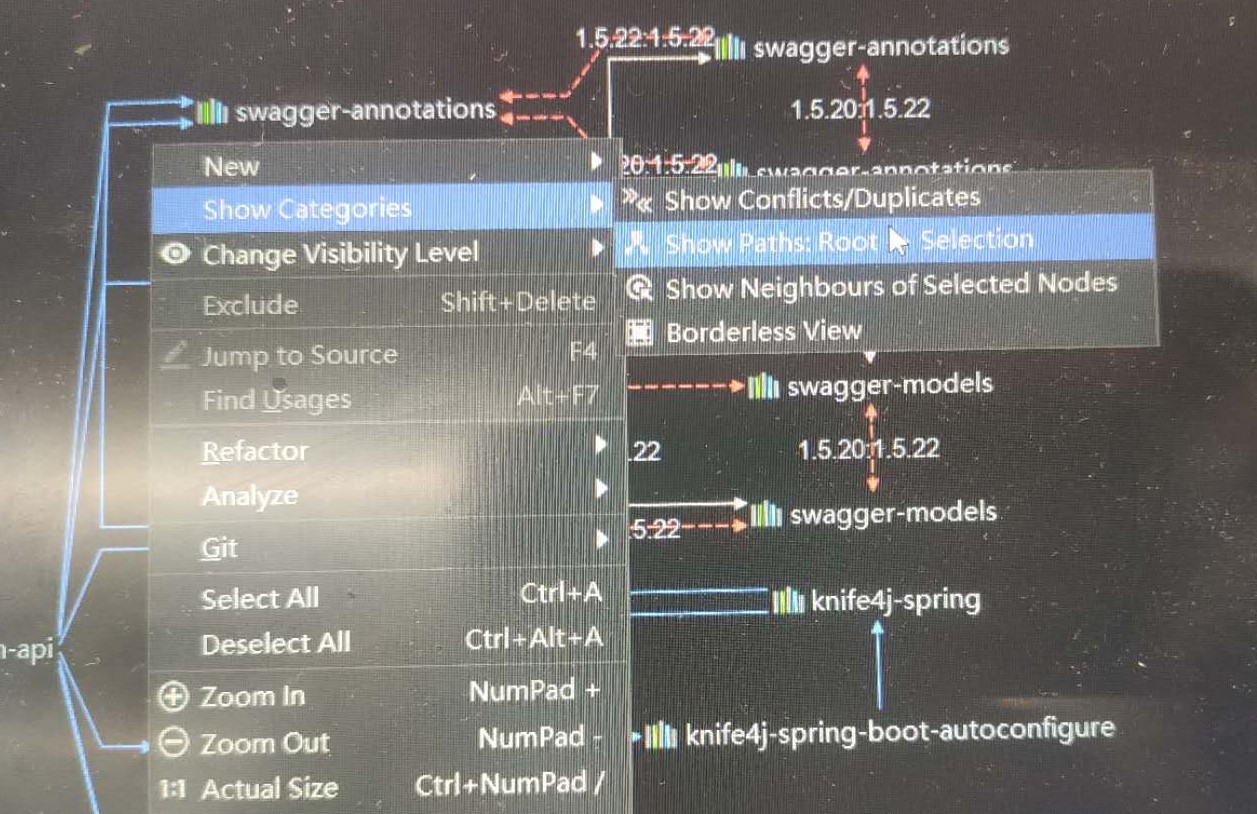 最后:右键点击 show CateGory显示不同的形状,或者 ctrl + f 查找你找的jar 包的名字就可以知道属于哪个依赖